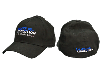 Black cap made of stretchable cotton twill. Featuring the Water-Revolution Logo on front and back. 97% Cotton, 3% Spandex. Structured firm front panel, flexible fit, low-fitting. Matching fabric undervisor. Not pony-tail friendly.