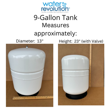 - 9.2 Gallon Tank: Diameter is 13"; Height is 23" (with valve).